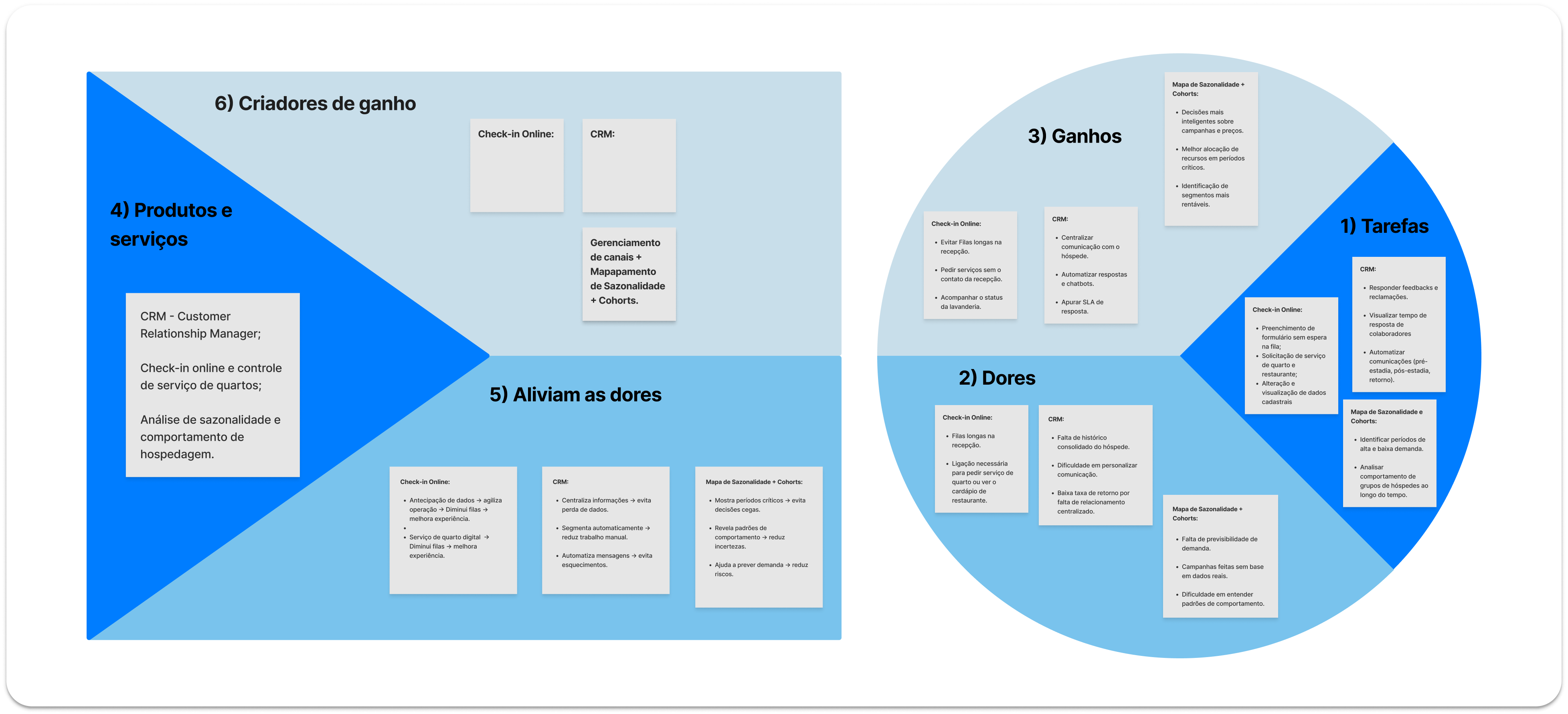Com os dados e descobertas em mãos, definimos as funcionalidades estratégicas que orientam o planejamento do produto. O objetivo é priorizar soluções que aumentem a eficiência operacional, melhorem a comunicação com o hóspede para proporcionar diferenciais competitivos para o hotel.