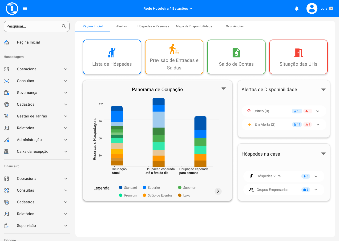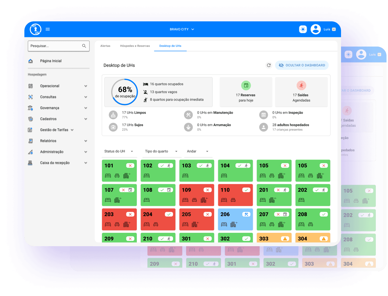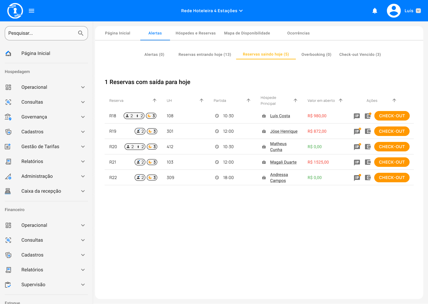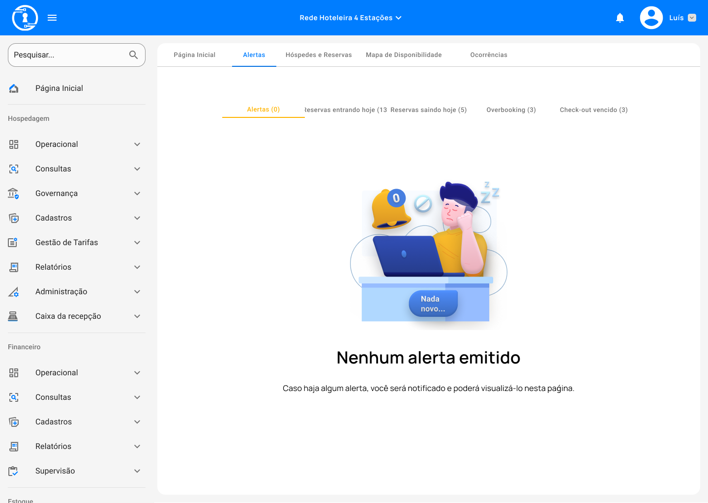 • É de costume geral não manter pendências nas tarefas de trabalho. Eventualmente, por exemplo, ao alocar todos os quartos reservados, o usuário irá apenas observar se notificações ou alertas foram gerados.