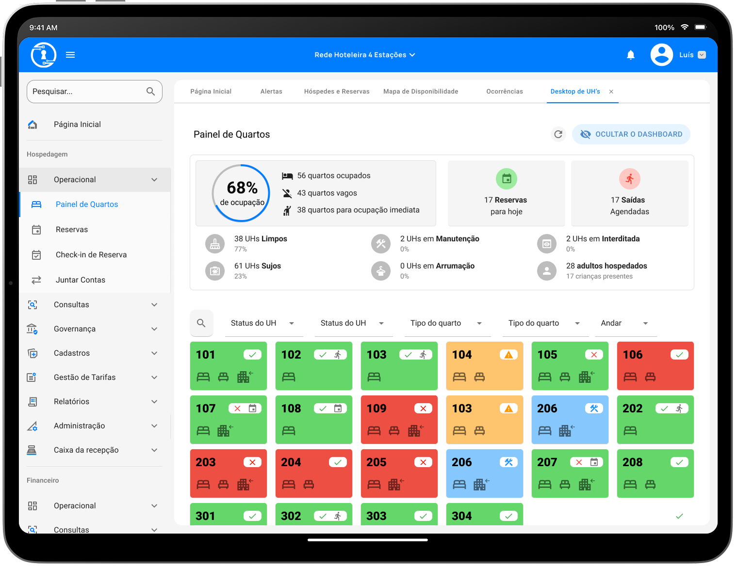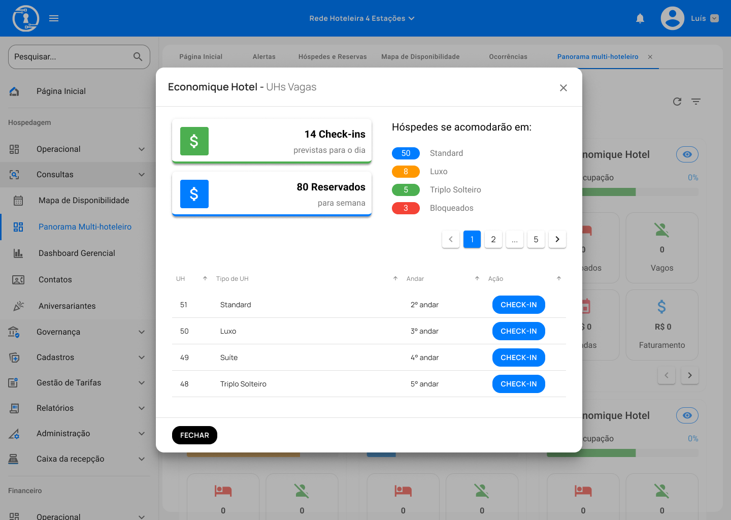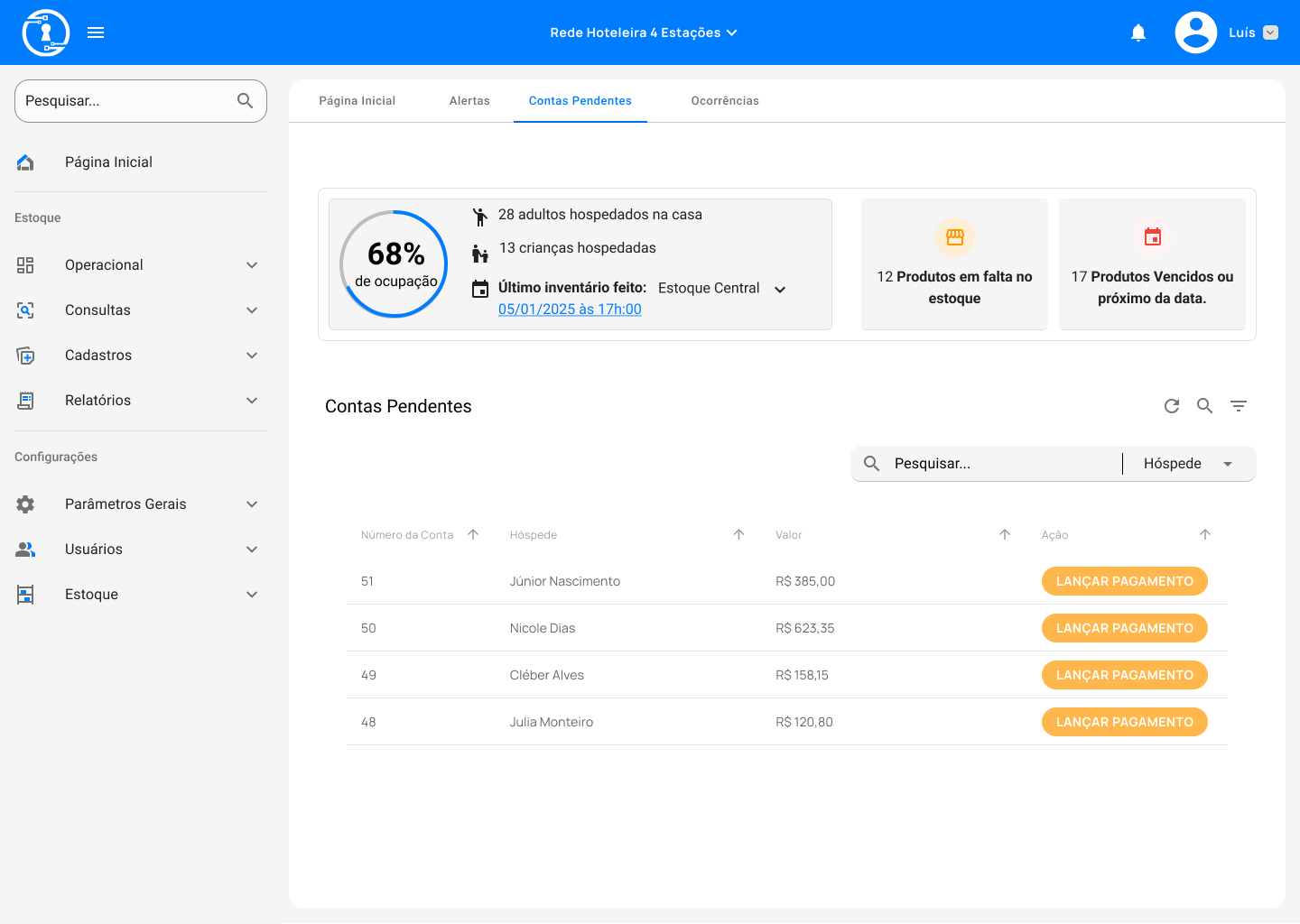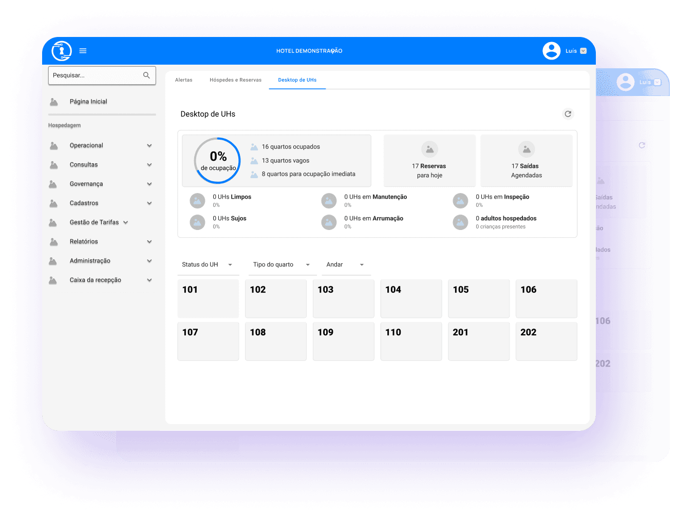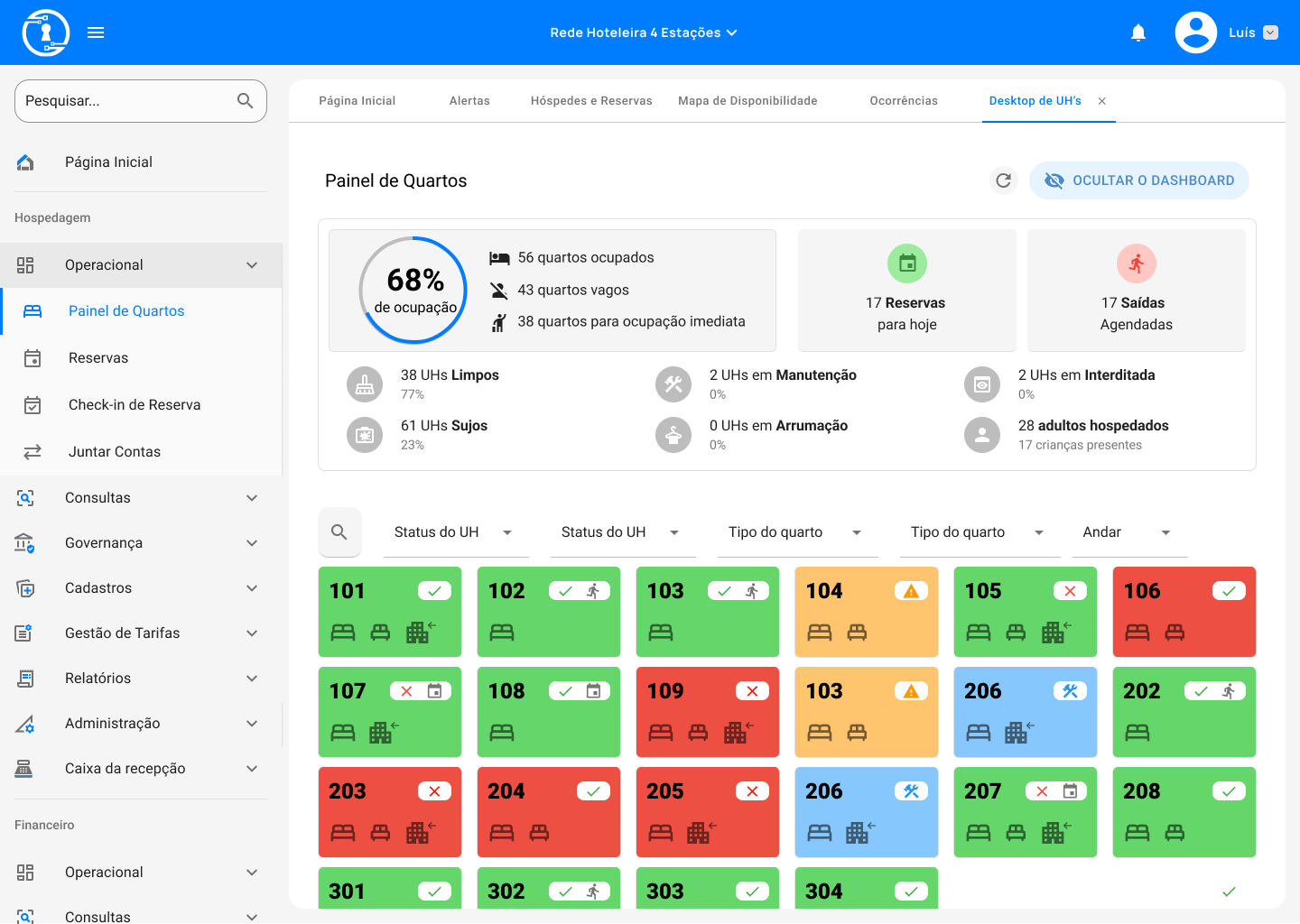 • É de costume geral não manter pendências nas tarefas de trabalho. Eventualmente, por exemplo, ao alocar todos os quartos reservados, o usuário irá apenas observar se notificações ou alertas foram gerados.