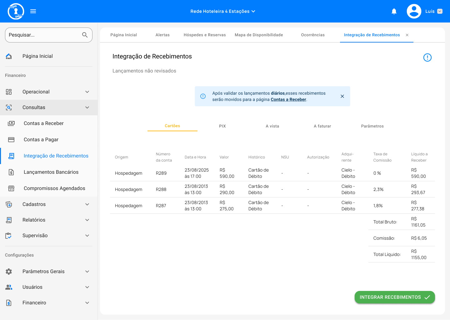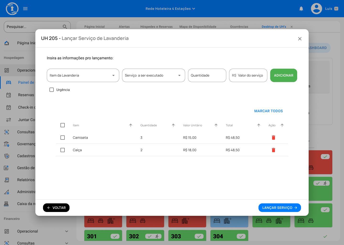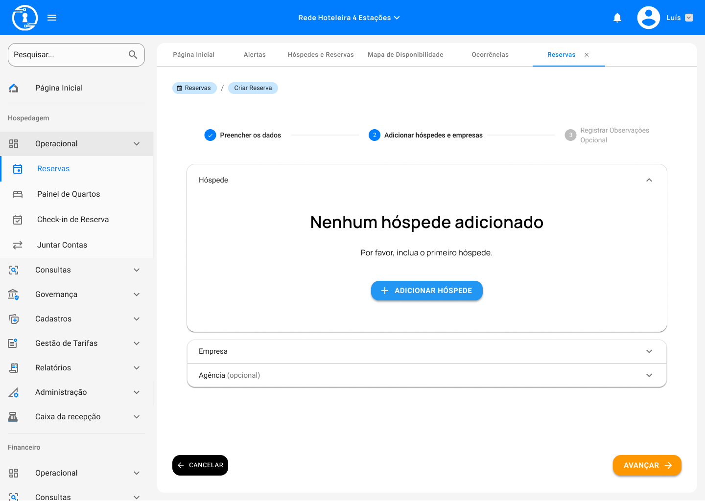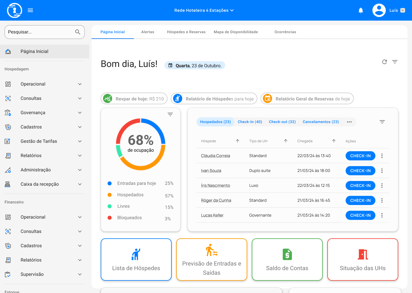 • É de costume geral não manter pendências nas tarefas de trabalho. Eventualmente, por exemplo, ao alocar todos os quartos reservados, o usuário irá apenas observar se notificações ou alertas foram gerados.