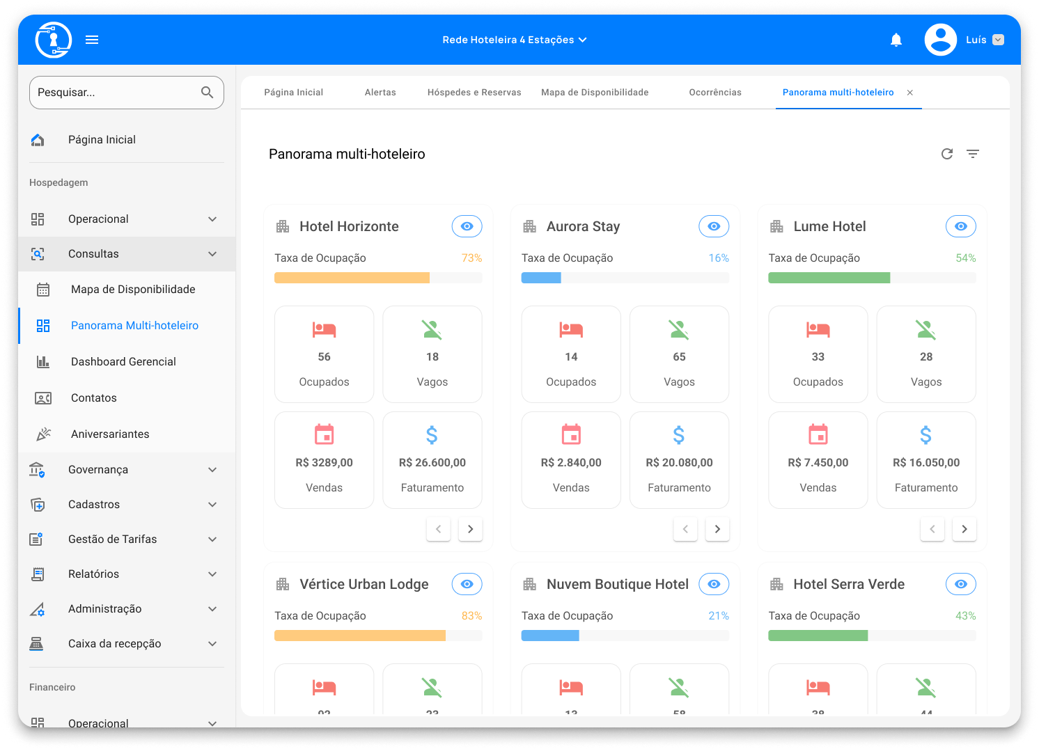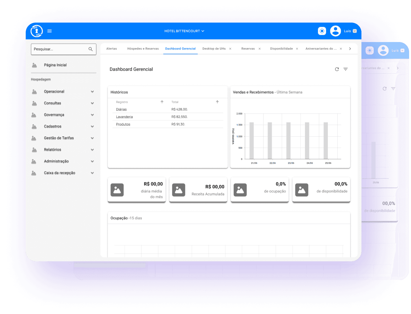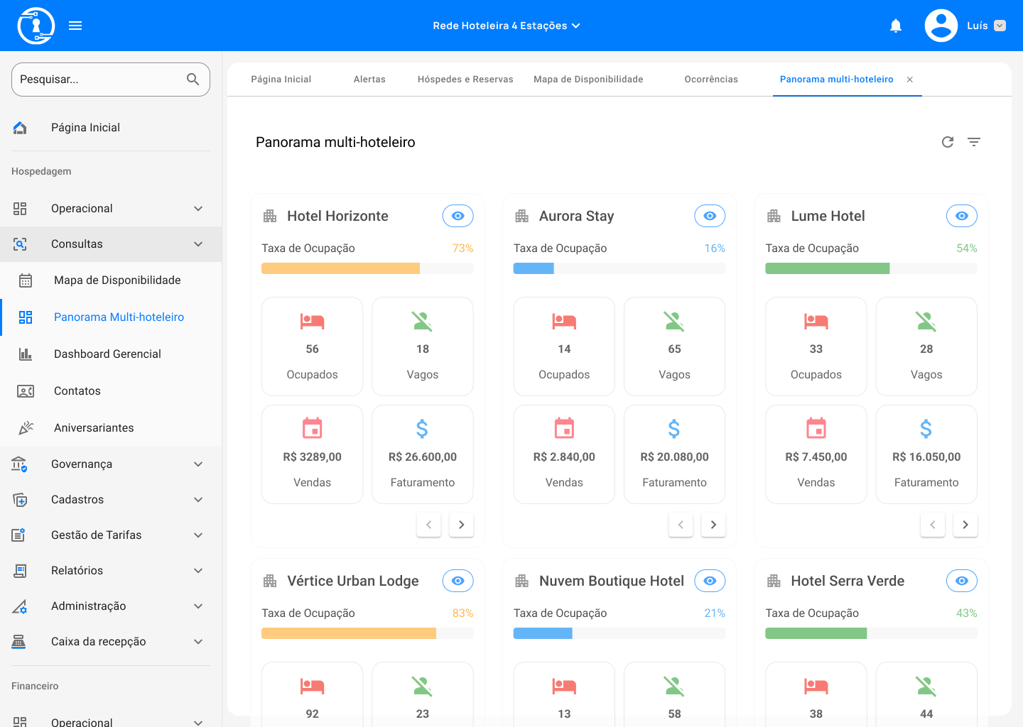Um sistema para múltiplos usuários... O StayHub supre a necessidade de todos os setores de um hotel: Do pontos de venda à gestão de reserva, financeira ou de marketing.